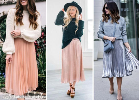 В этом сезоне по-прежнему актуальными остаются плиссированные модели, которые считаются универсальными предметами гардероба.
