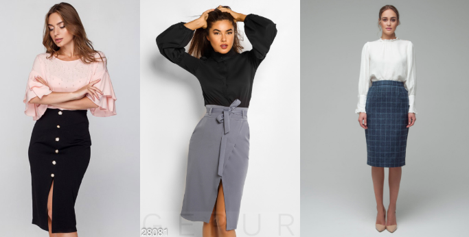 Эталоном классического гардероба является юбка-карандаш. Сегодня юбка прямого кроя считается не только атрибутом делового гардероба, но и элементом, который вошел в повседневный обиход многих женщин. При этом дополнить юбку-карандаш можно разнообразной обувью: классическими туфлями либо спортивной женской обувью. Очень важно подобрать правильную длину юбки, которая должна незначительно заходить за колено.