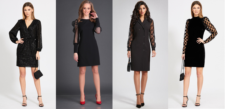 ● Черный. Классический цвет праздничного наряда, который никогда не выйдет из моды и станет прекрасным решением для любой фигуры;