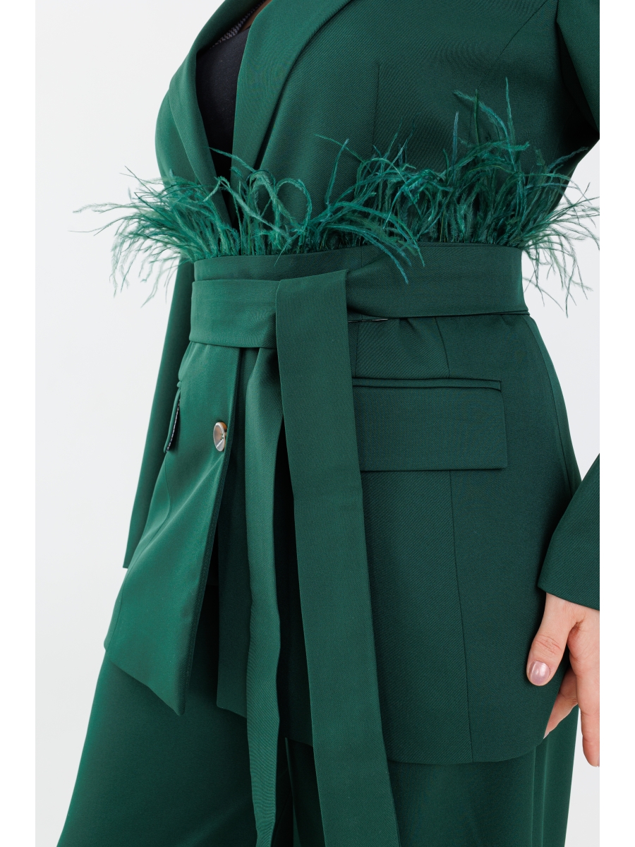 С этим поясом у вас есть два варианта расположения перьев: вверху, создавая волнующий вихрь из элегантности, или внизу, придавая образу таинственное очарование. Меняя конфигурацию, вы легко адаптируете его к разным нарядам – будь то изысканное платье или стильный жакет.
