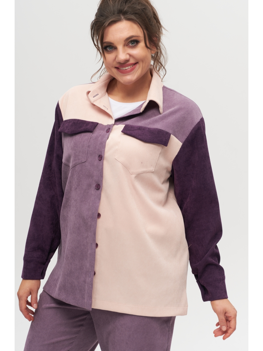 Рубашка женская, прямого силуэта, в стиле пэчворк, длина до середины бедра. Спущенное плечо, рукав длинный на манжете. Горловина обработана воротником со стойкой. По переду кокетки, с нагрудными накладными карманами с клапаном, по центру застежка на петли пуговицы. По спинке кокетка декорированная бахромой. Стильная, актуальная и супер комфортная обновка только для вашего образа.