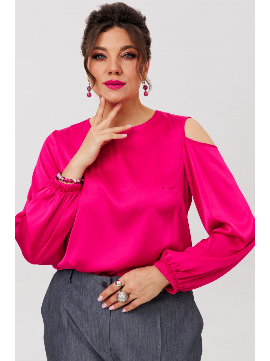 Широкий длинный рукав, мягко собранный на резинке, создаёт элегантный объём, а открытое левое плечо вносит ноту игривого кокетства. Сочный оттенок «маминой помады» наполняет образ энергией и яркой эмоцией, делая его по-настоящему запоминающимся.