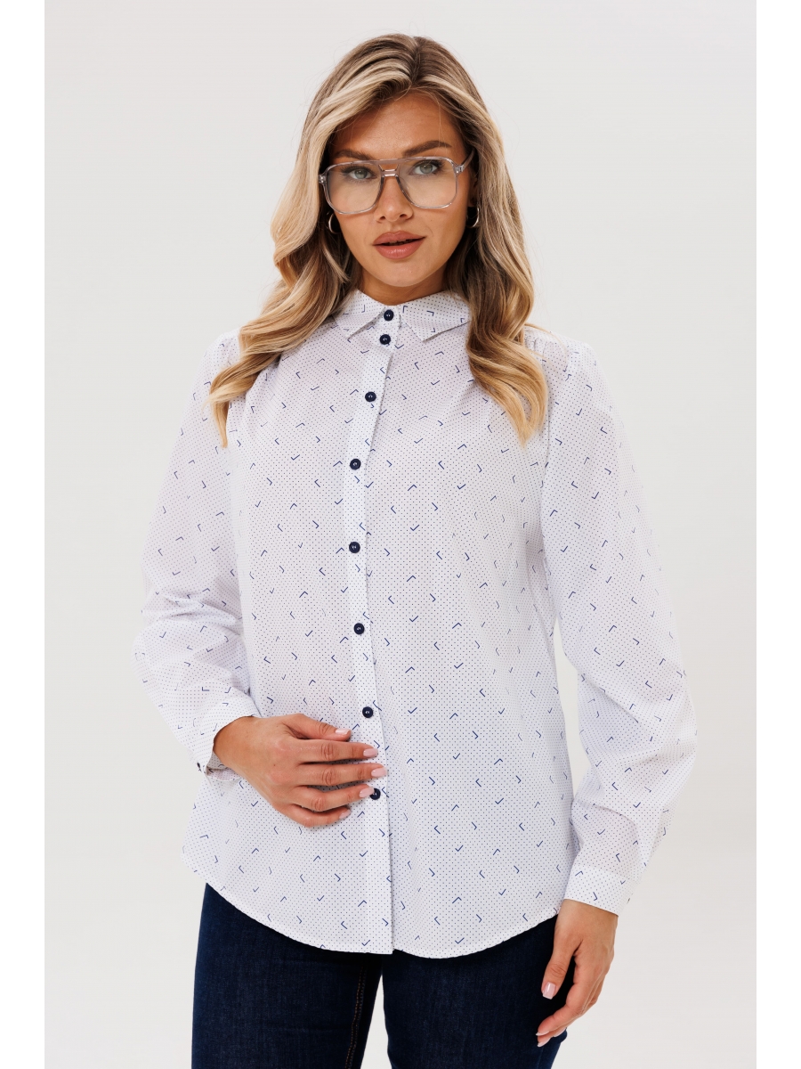Рукава втачные, с манжетами — сидят аккуратно и комфортно. Небольшая сборка по переду от кокетки и аккуратная встречная складка на спинке добавлены для свободы движений, чтобы блузка не тянула и не морщилась при носке.