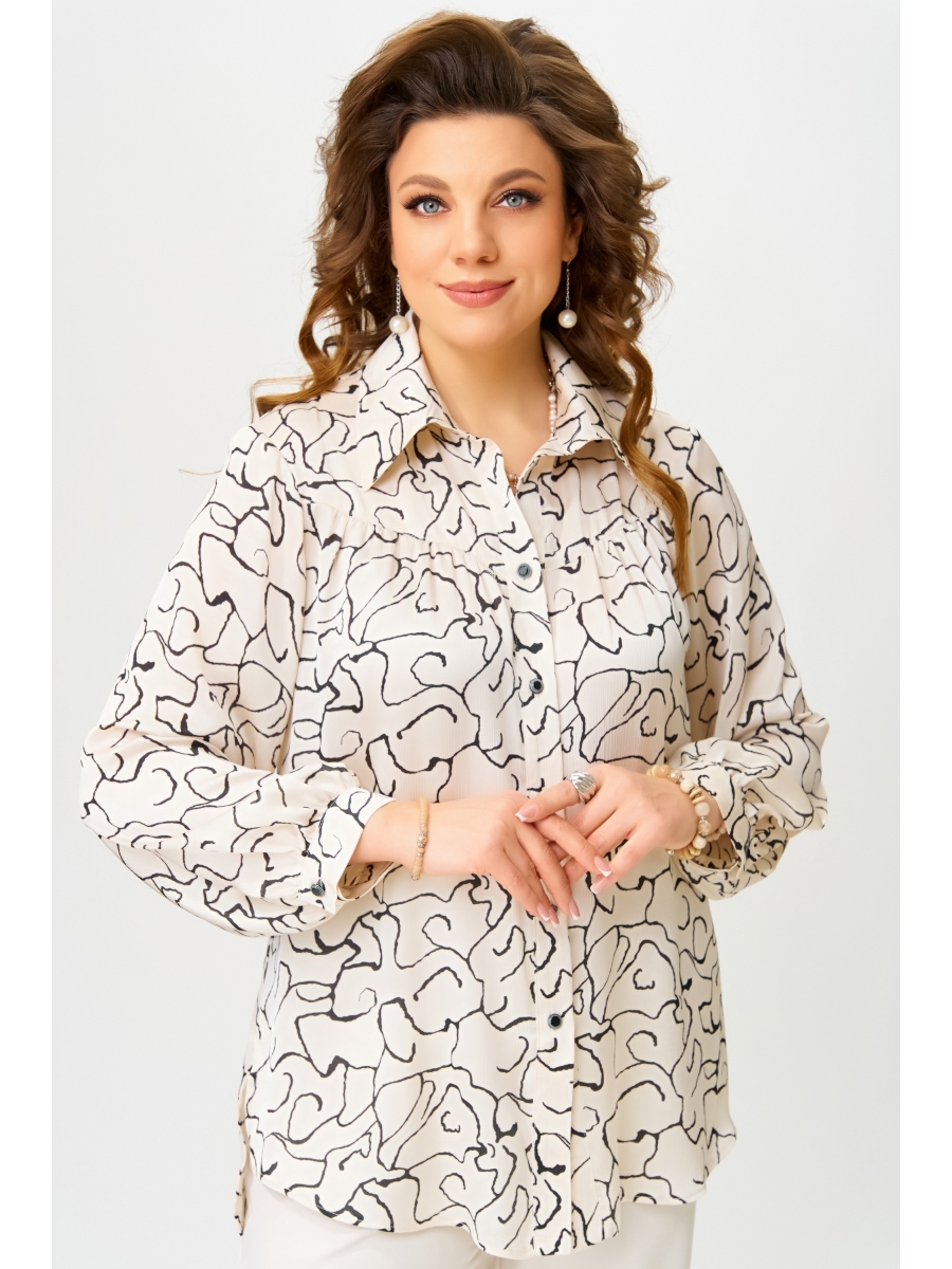 Оформить заказ →Женская блузка "Хариса" выполнена из текстильной ткани. Блузка прямого силуэта. Воротник отложной рубашечного типа на стойке, застежка на петли и пуговицы, планка отрезная. По спинке блузки кокетка, рукав в блузке втачной, по низку рукава манжет с застежкой на петлю и пуговицы. По полочке сборка и отрезная кокетка. Низ изделия обработан швом в подгибку с открытым срезом. В боковых швах блузки - разрезы.