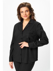 Блузка женская из хлопковой ткани, прямого силуэта с втачным рукавом. Линия плеча слегка спущена. Застежка центральная на петли и пуговицы. Воротник отложной с лацканами. Перед с вытачками по линии груди. По левой части переда накладной карман с отделкой. Рукав длинный рубашечный, по низу притачная манжета с застежкой петли и пуговицы. Линия низа фигурная.