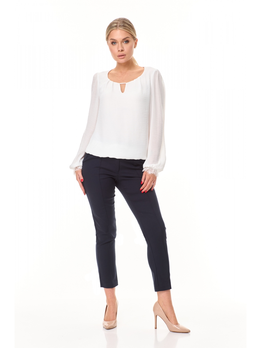 Стильная блузка офисного типа, прекрасно сочетается с брюками, юбками, жилетами. Данная модель блузки может служить и нарядом на любой праздник. Модель полуприлегающего силуэта. Спинка цельнокроеная. Рукав втачной, полной длинны низ рукава обработан резинкой с элементом кружево. Модель актуальна круглый год. Низ блузки обработан резинкой.