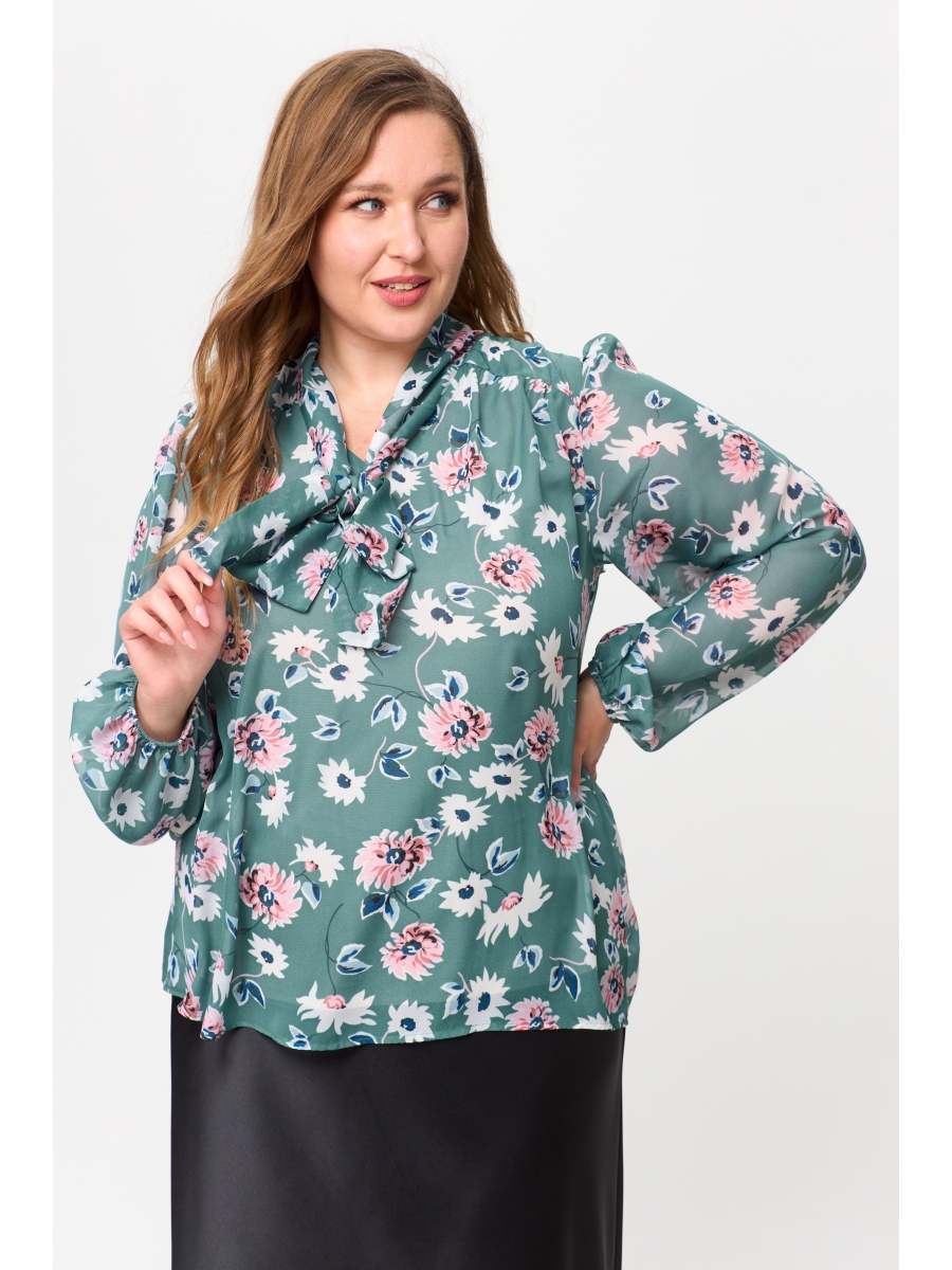 Оформить заказ →Женская блузка, свободного кроя с длинным широким рукавом внизу на резинке. По окату рукава сборка. Воротник-стойка переходит в бант или галстук.