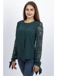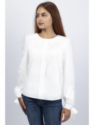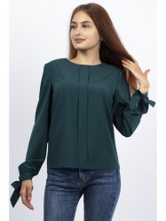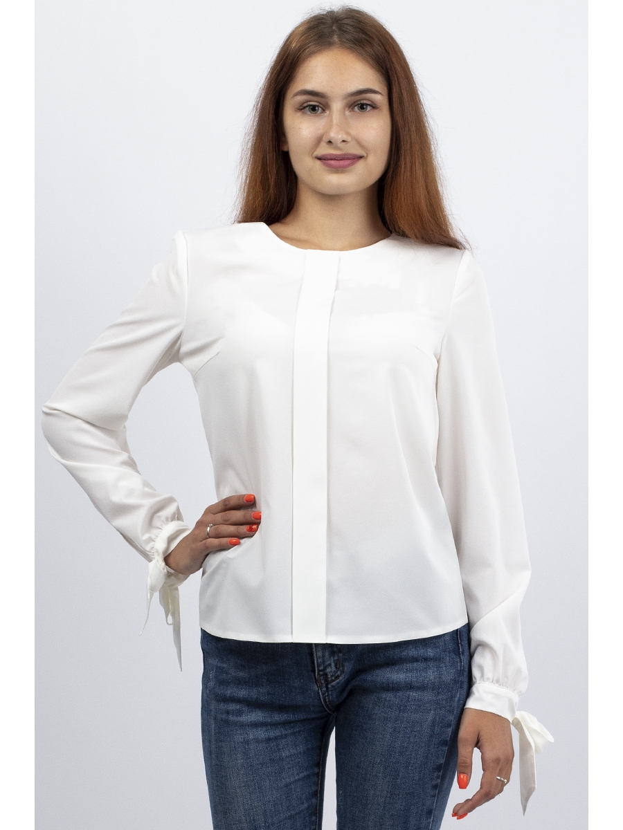 Рукав втачной из основной ткани, низ рукава, слегка присборенный, обработан приточной манжетой завязывающийся на бант.