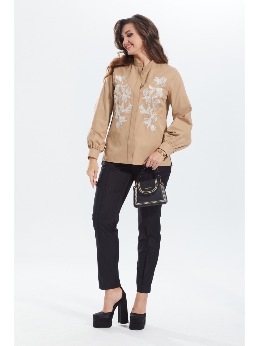 Оформить заказ →блузка из смесовой хлопковой ткани с вышивкой по полочкам прямого силуэта. По переду нагрудные вытачки, потайная застежка. Воротник стойка. Рукав длинный на манжете. В боковых швах разрезы.