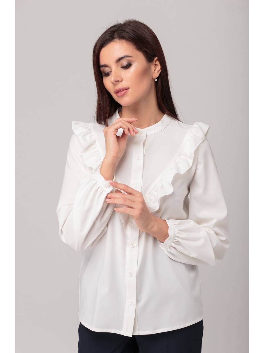 Блузка прямого силуэта, умеренного объема из струящейся ткани.
