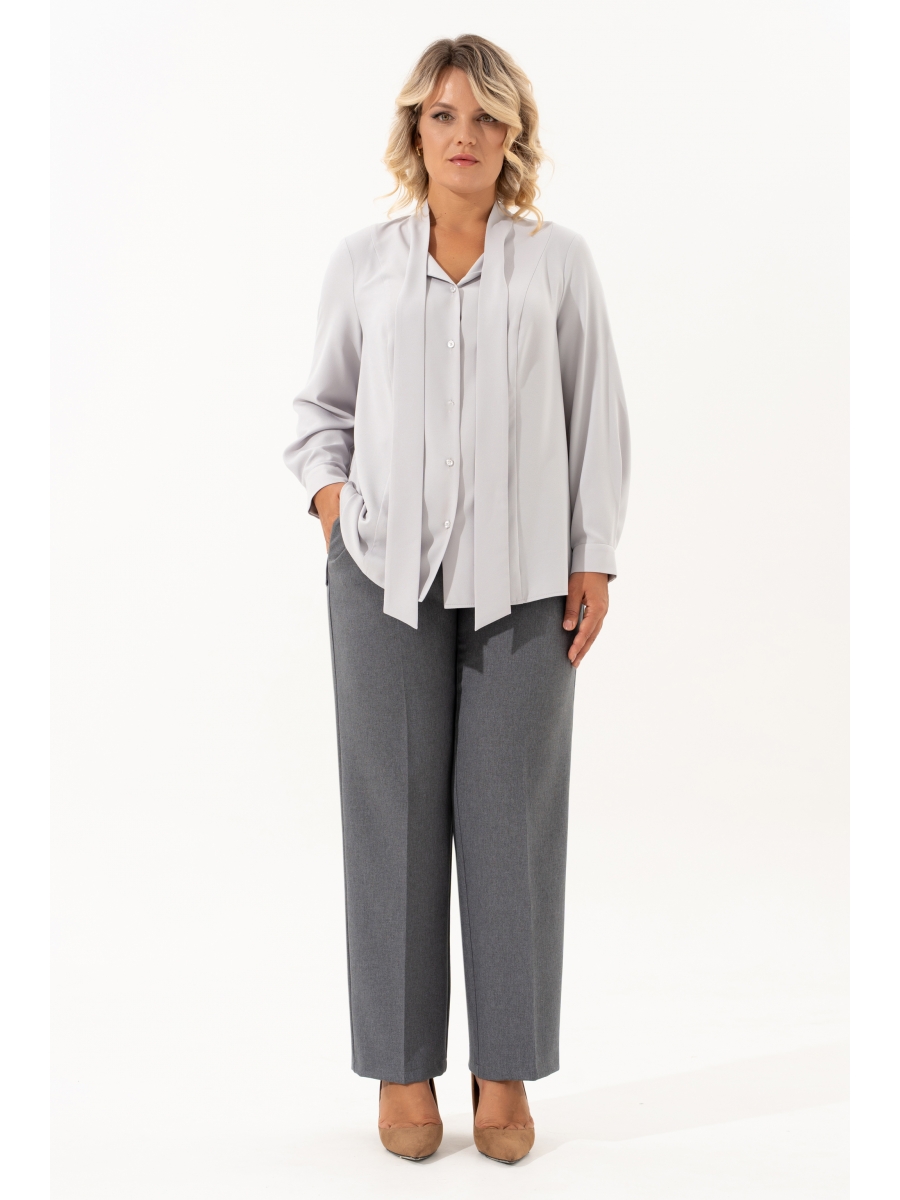 Прекрасная классическая блуза с воротником - бантом имеет прямой крой, поэтому отлично подходит для любого типа фигуры. Спинка со средним швом. По переду блузы есть рельефы от плечевого шва, в боковых швах - небольшие разрезы. Блуза изготовлена из приятной к телу ткани, гладкая фактура не мнётся и сохраняет свой первоначальный вид даже после многократных стирок. Рукав втачной, одношовный, длинный с манжетой на две петли и пуговицы. Комфортная модель для работы и просто для повседневного применения, так и к композиции нарядного ансамбля. Элегантная блуза с бантом - утончённая универсальность. Она гармонично дополнит Ваш гардероб, став незаменимым элементом на все случаи жизни. Гладкая фактура материала и длинные рукава добавляют элегантности и изысканности. Благодаря своему универсальному назначению, эта блуза подходит как для офисного стиля, так и для повседневного ношения, и в том числе на выход. Её однотонная структура и бескарманная конструкция делают блузу идеальным выбором для тех, кто ценит простоту и стиль.