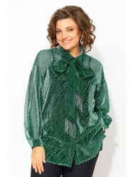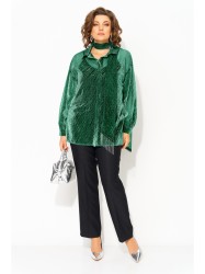 Трендовая блузка из легкой сетчатой ткани c эффектом мерцания станет стильным дополнением вашего гардероба. Ее можно комбинировать с различными элементами гардероба, накинуть поверх платья или топа. Модель выполнена с воротником-стойкой, который добавляет элегантности образу. Застежка центральная на петли и пуговицы. По бокам расположены разрезы. Свободный крой обеспечивает комфорт и подчеркивает женственность. Длинный рукав с манжетами делает ее универсальной для любого сезона, а удлиненный силуэт добавляет изысканности. В комплект входит съёмный пояс с декоративной бахромой, который может служить в виде шарфика и добавить элегантность образу.