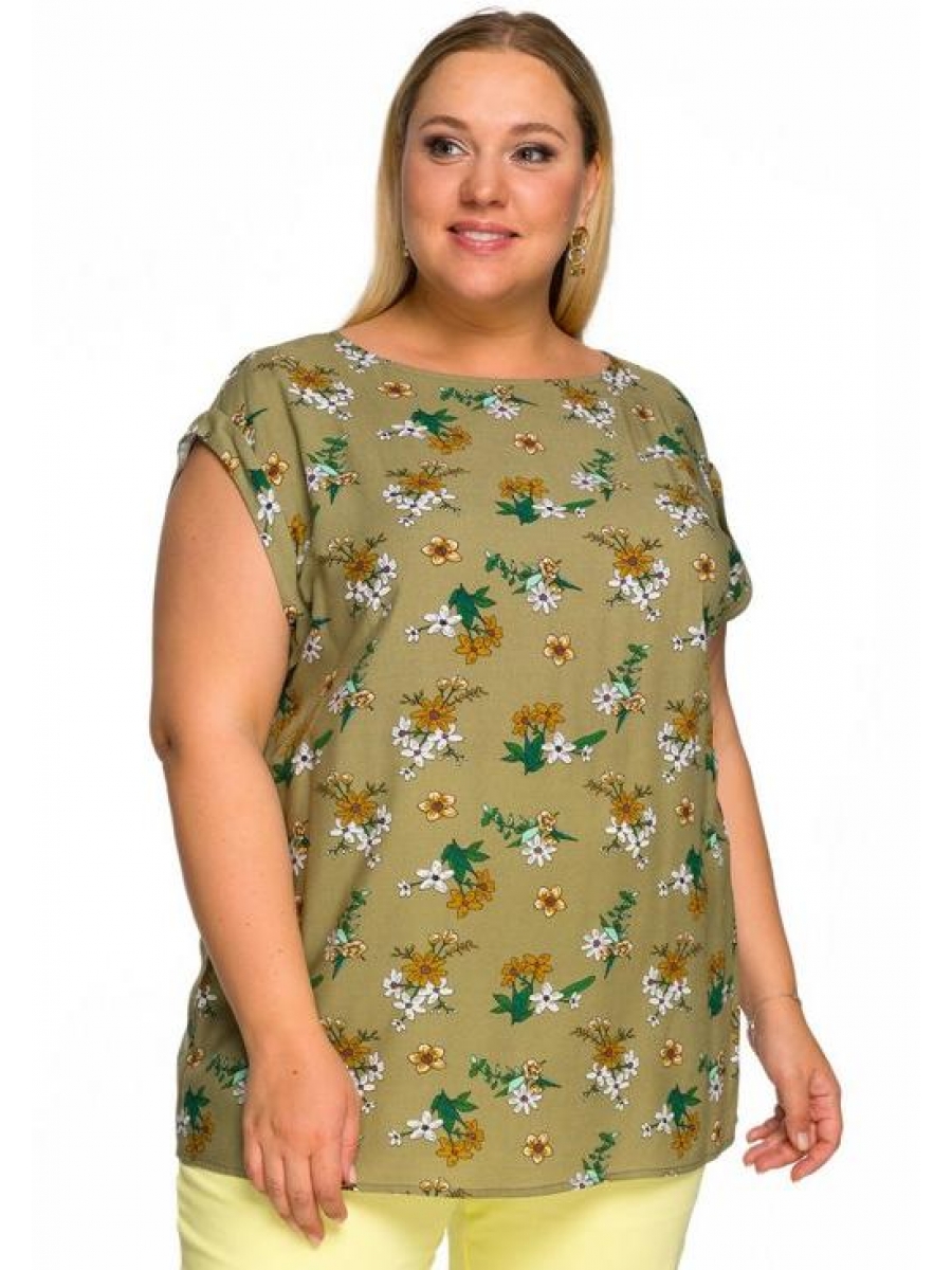• Название: Блуза со спущенным плечом, штапель цветочный, оливковый