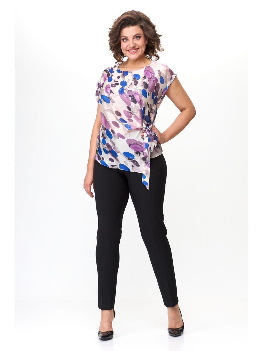 Стильная женская блузка - базовая и популярная вещь гардероба любой женщины. Летняя жаркая погода не доставит дискомфорта, блузка приятная к телу, не мнется во время носки. Без застежки. Вырез горловины круглый. Силуэт свободный. Рукав короткий. С боку разрез, бант. Классический крой блузки будет комфортно сидеть на любом типе фигуры.