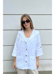 Оформить заказ →Блузон изготовлен из качественного мягкого льна с эффектом мятости прямого силуэта на пуговицах с капюшоном, со спущеной линией плеча. По переду накладные карманы. Рукав 3/4 с патой, застёгивается на пуговицу.