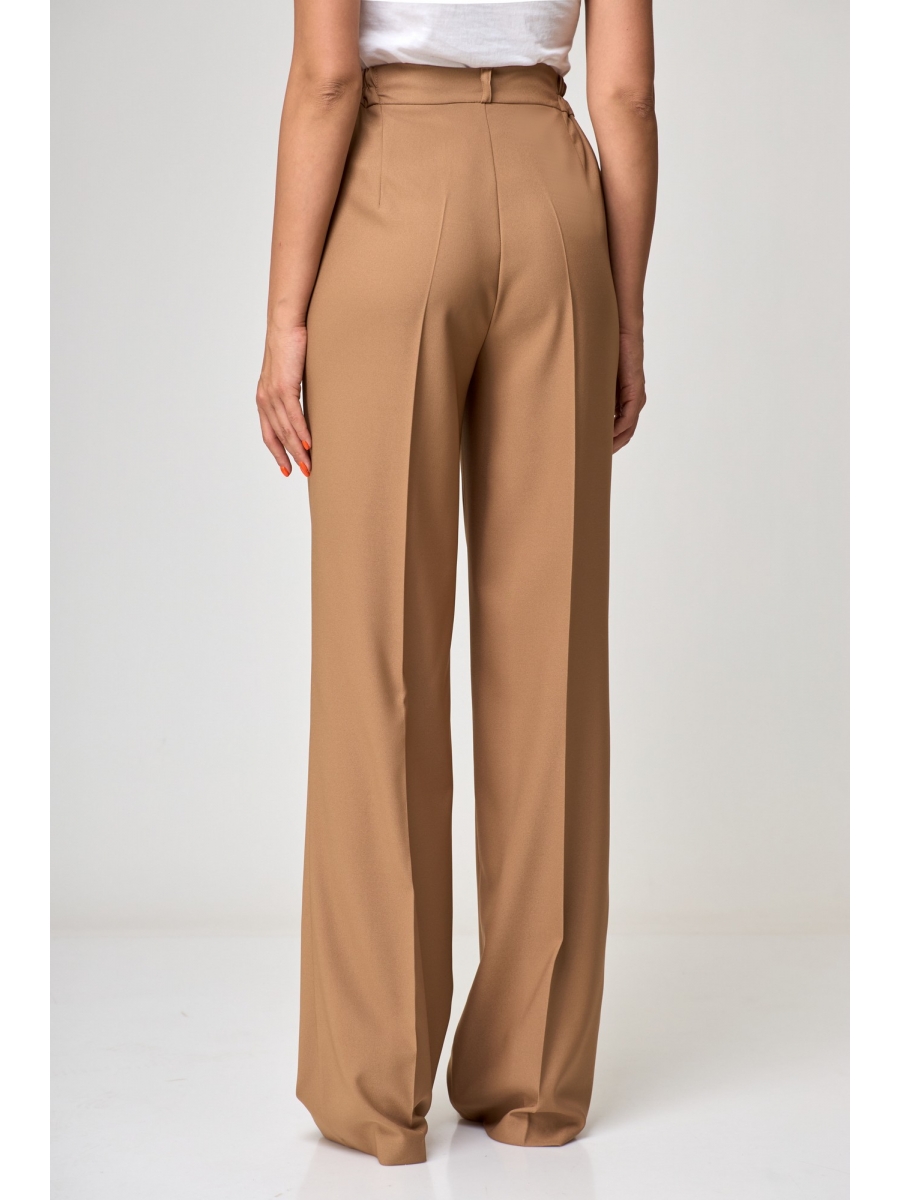 Брюки классического покроя с завышенной линией талии, с боковыми функциональными карманами по переду, с притачным поясом, в который вшиты две эластичные ленты по спинке .