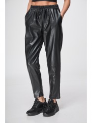 Брюки из эко-кожи с зауженным к низу кроем, обеспечивающим элегантный силуэт. Приятный оттенок добавляет изыска, а пояс на резинке с шнурком гарантирует идеальную посадку. Идеальный выбор для стильного и комфортного образа.