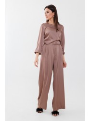 Брюки изготовлены из высококачественного армани шелка и имеют высокую посадку, что позволяет подчеркнуть фигуру и выглядеть элегантно. Они длинные и расширенные к низу, что создает легкий и свободный образ. В передней части брюк есть моделирующие защипы, которые подчеркнут вашу талию и создадут прекрасную силуэт. Кроме того, брюки имеют боковые карманы, что делает их функциональными и удобными для повседневного ношения.