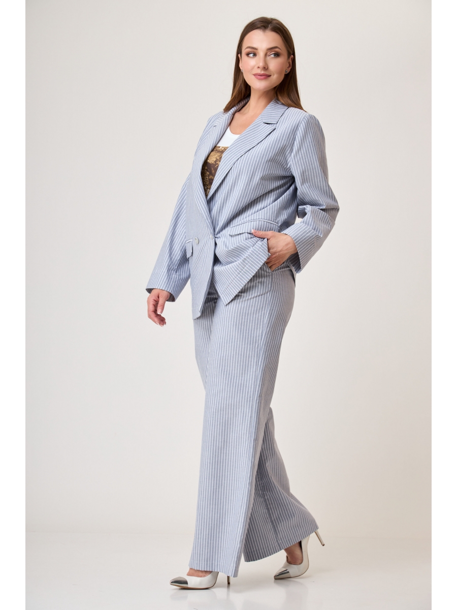 Съемный пояс дополнительно подчеркивает талию и может использоваться как в брюках, так и в жакете 1299.1, позволяя создавать различные варианты стиля.