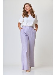 Брюки с высокой посадкой прекрасно дополняют жакет 1299.1. Брюки длинные и расширяются к низу, что придает им элегантность и стиль. Передняя часть брюк оснащена боковыми карманами, а застежка выполнена на гульфике с молнией. Пояс находится от бокового шва по спинке и имеет резинку для комфорта, а передняя часть закрывается петлей и пуговицей.