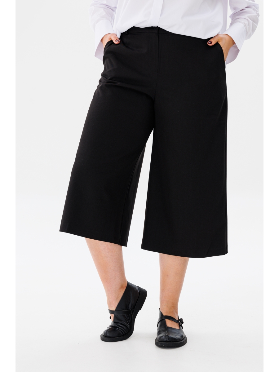 Эти классические кюлоты на притачном поясе станут любимой вещью в вашем гардеробе. Свободный силуэт и умеренный объем обеспечивают максимальный комфорт.