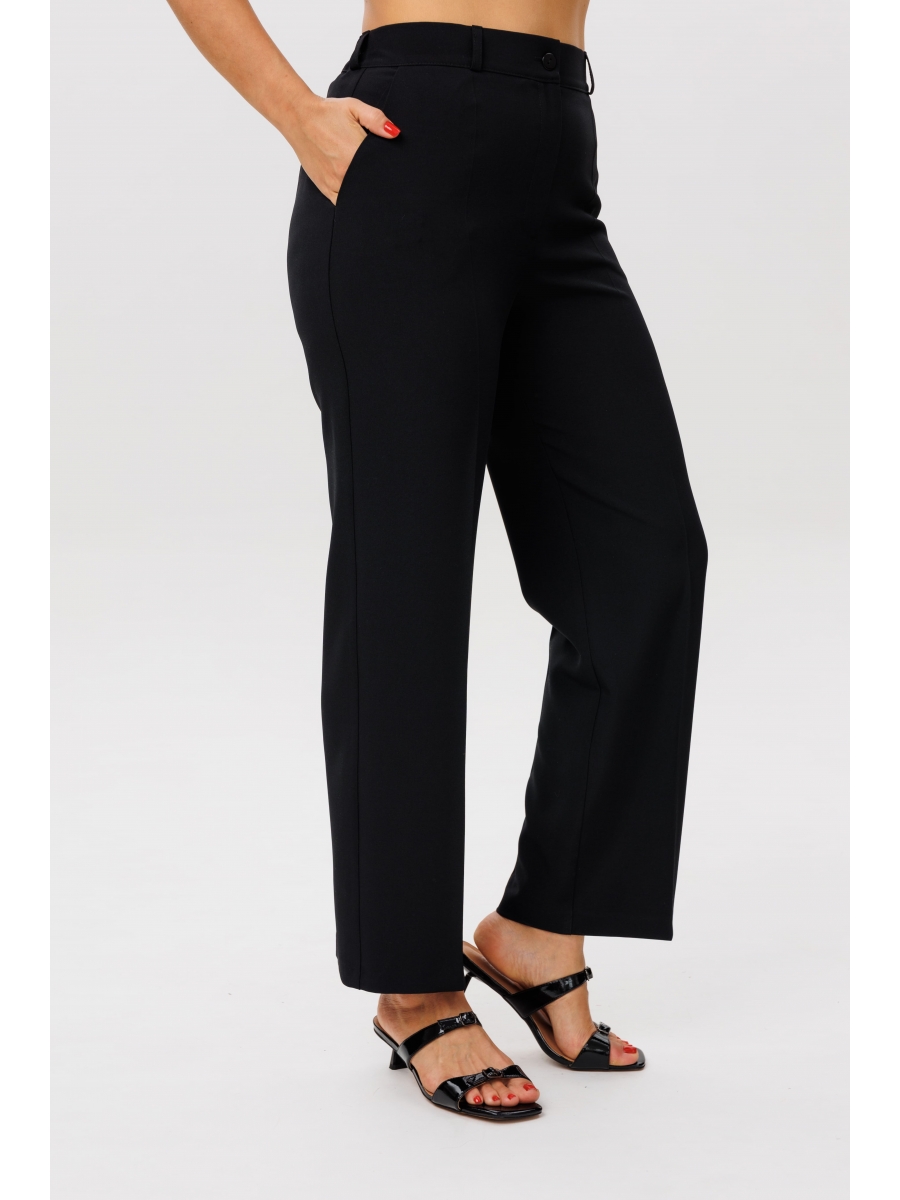 Эти классические брюки созданы для тех, кто ценит безупречный крой и комфорт. Высокая посадка деликатно поддерживает фигуру, а прямой крой со стрелками визуально вытягивает силуэт, делая его стройнее. Модель брюк универсальная, подойдёт также и обладательницам пышных бедер.
