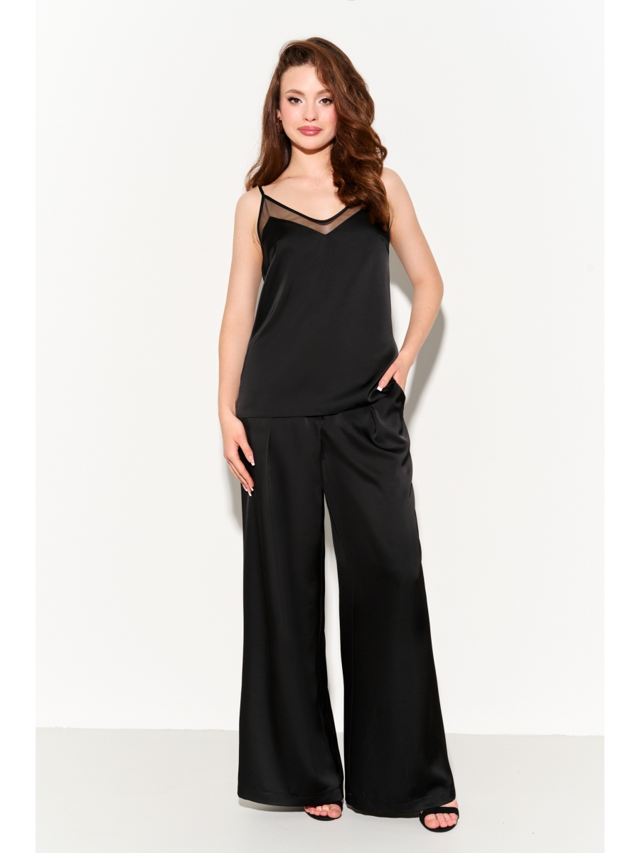 Классические брюки прямого силуэта с мягкими складками по переду и функциональными карманами в боковых швах; пояс притачной с эластичной тесьмой по спинке для лучшего прилегания; застежка на молнию, петлю и пуговицу. Брюки полностью соотвествует заявленному размеру.