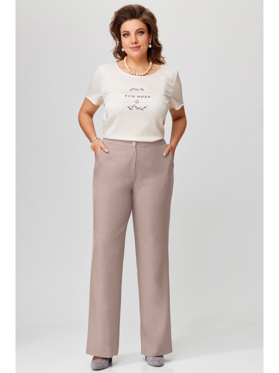 Женские брюки ФИТА выполнены из качественной текстильной ткани. Брюки прямого силуэта с застежкой на молнию и пуговицу. По переду брюк карманы, верх брюк обработан поясом, по спинке резинка. Низ обработан в подгибку.