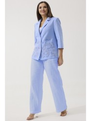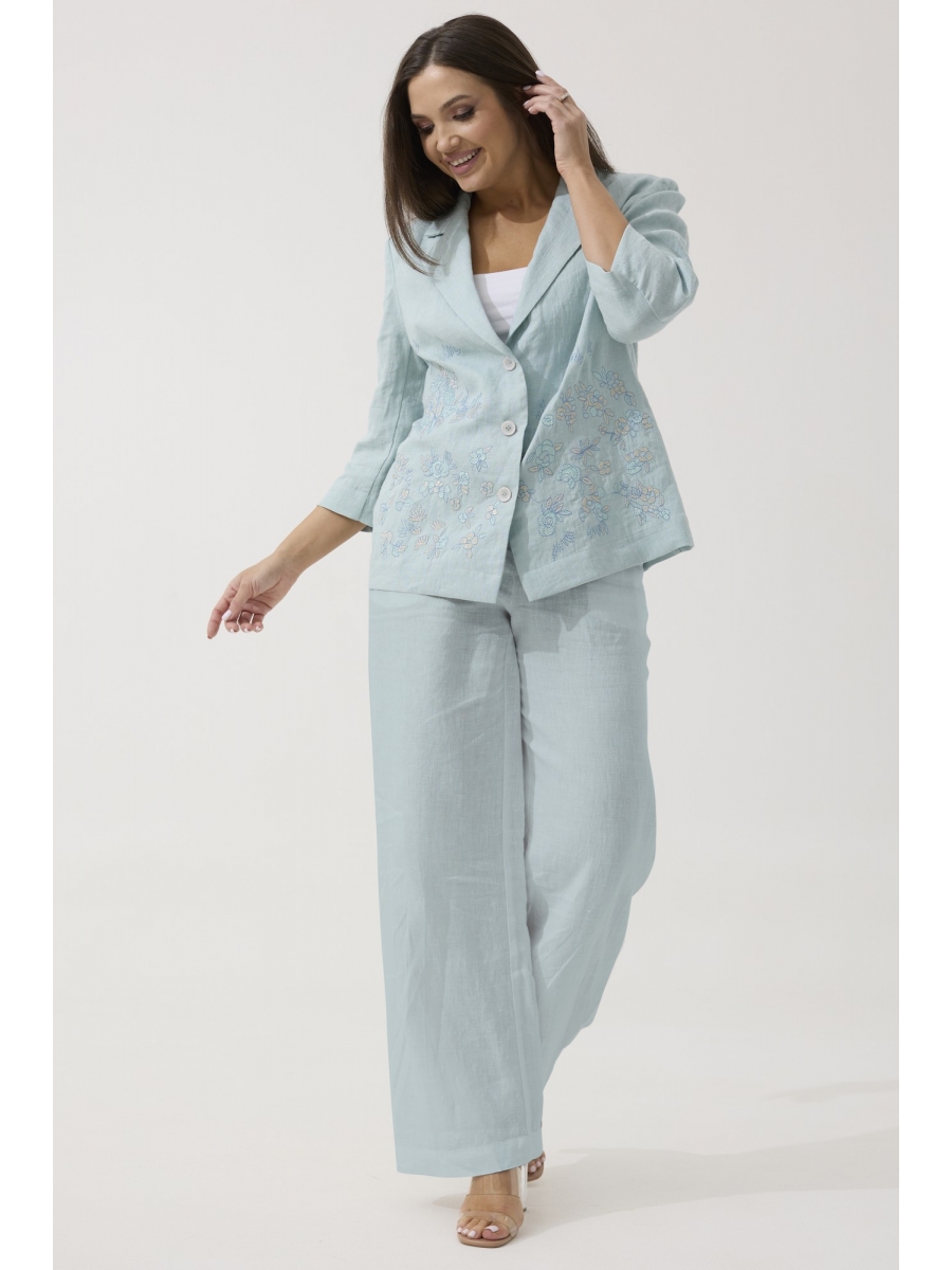 Брюки будут идеально смотреться с нашими жакетами 1076 и 1078 или рубашками 1079 и 1080 (на фото), также брюки можно купить в составе костюмов 3047и 3052. Составят незаменимую часть вашего базового весенне-летнего гардероба.