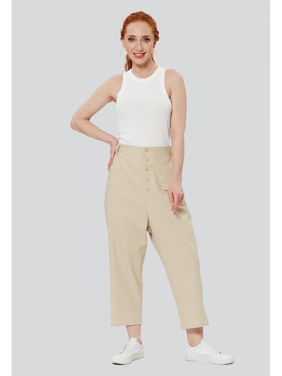 Оформить заказ →Ультрамодные укороченные летние брюки с заниженой слонкой и пуговицами на гульфике из смесовой натуральной ткани. Слева накладной карман с клапаном. Сзади настрочные листочки и вточная резинка на поясе.