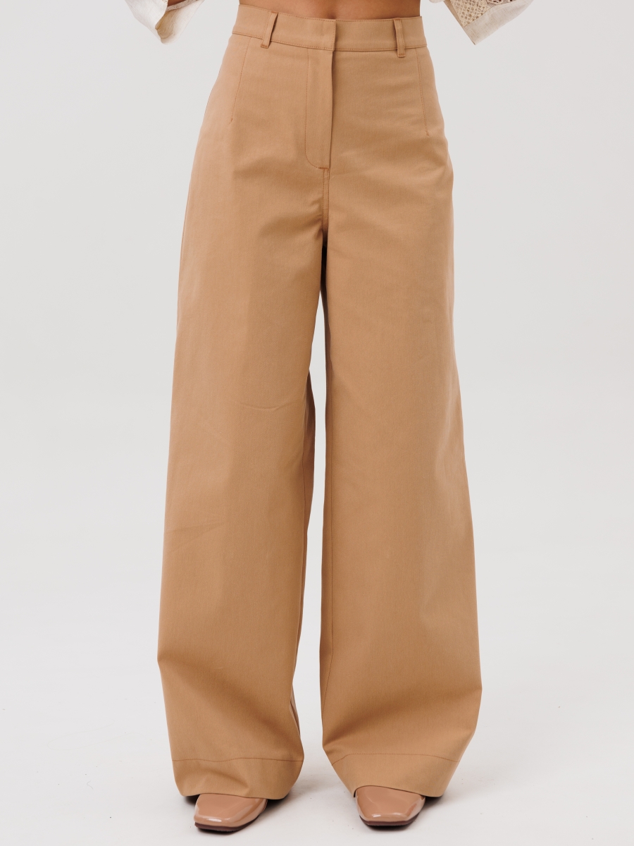 Карманы, вытачки, пояс, низ брюк отделаны отделочной строчкой.