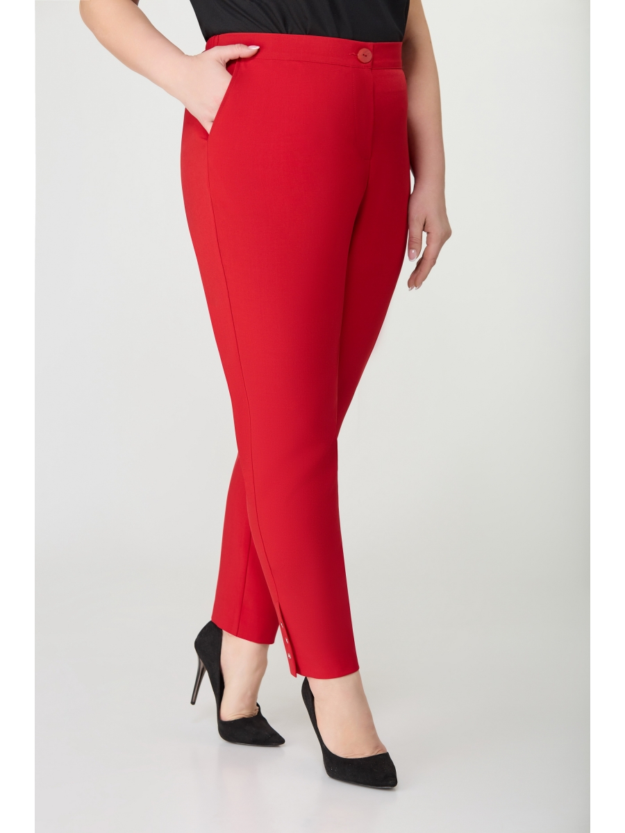 Оформить заказ →Брюки женские прямые, слегка заужены к низу, по переду обработаны карманы с отрезными бочками. Пояс притачной с резинкой по спинке. По низу в боковом шве выполнена шлица и закреплена тремя пуговицами.