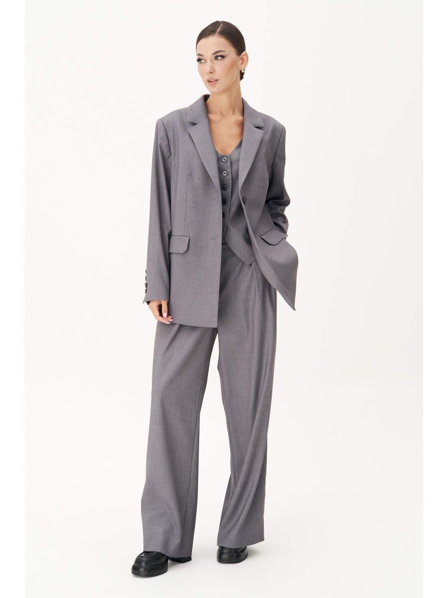 Оформить заказ →Брюки широкие, на притачном поясе со шлёвками, классической брючной застёжкой на потайные крючки и молнию. Передние половинки брюк с 2-ми мягкими складками-защипами, наклонными боковыми карманами. Задние половинки брюк с вытачками и прорезными карманами с листочкой.