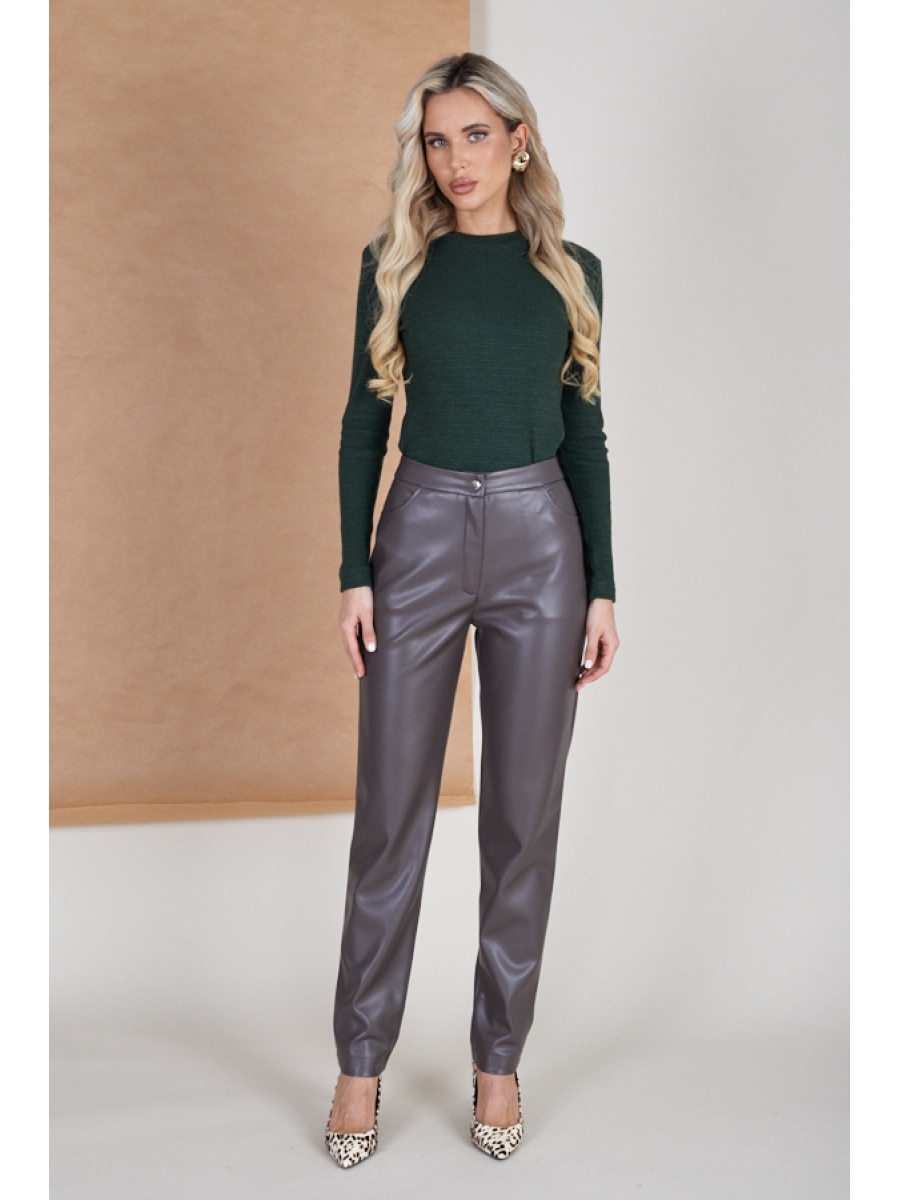 Оформить заказ →Брюки из эластичного полотна, с покрытием, имитирующим кожу, зауженные книзу. На передней части брюк карманы с подкройным бочком. Притачной пояс, застёжка на металлическую молнию-гульфик и кнопку.