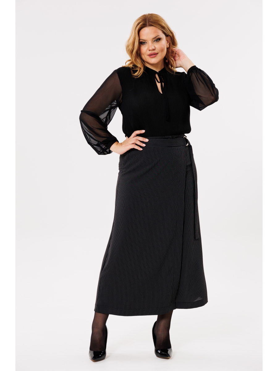 Модные брюки-кюлоты с элегантным запахом, свободной посадки, брючины широкие укороченные, чуть выше щиколотки. По переду молния, сзади по поясу вставлена резинка, запах фиксируется поясом на пряжке.