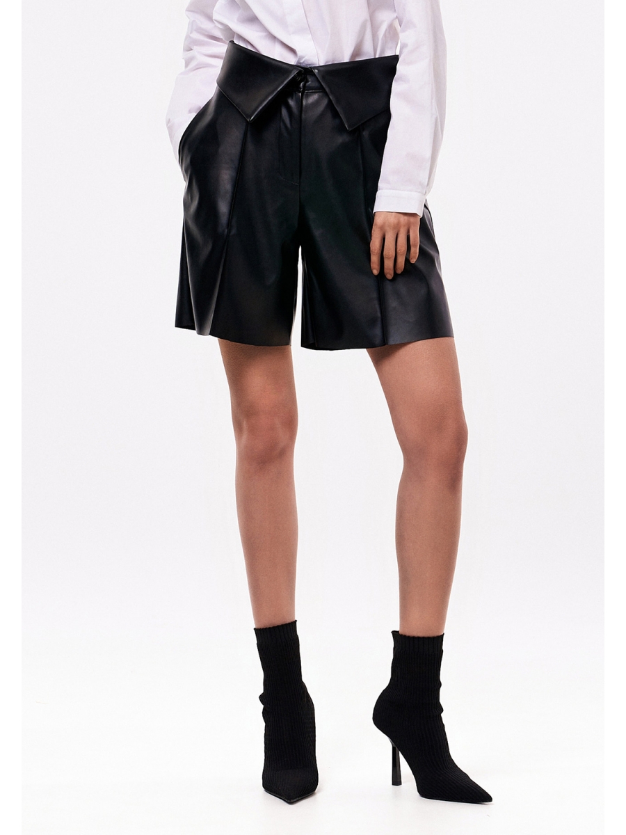 Оформить заказ →Шорты женские прямого силуэта, умеренного объема. На передних и задних половинках застрочены канты. Шорты с карманами в швах, низ обработан открытым срезом. Пояс притачной с отлетными фигурными лацканами. Застежка – гульфик на молнии с пробивной пуговицей. Длина шорт выше линии колена.