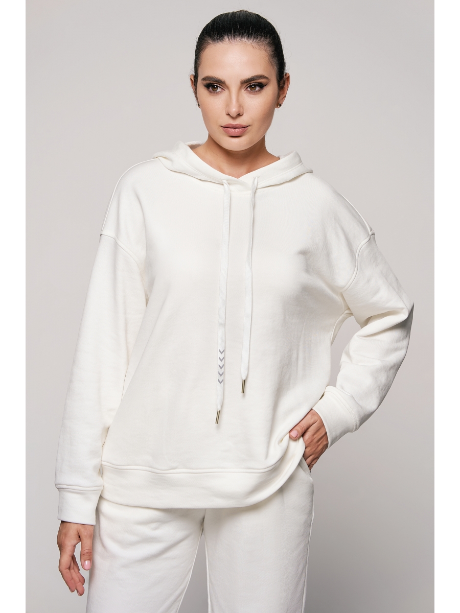 Оформить заказ →Женский худи с капюшоном свободного силуэта выполнен из высококачественного футера 3-х нитки класса "пенье". Лицевая сторона ткани гладная, изнанка - петлеобразная. Изделие имеет спущенную линию плеча и длинные рукава с углубленной проймой. Низ худи и рукавов выполнены с планками без резинок, в капюшон вставлен декоративный шнур.