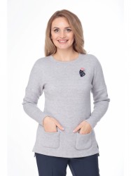 Приспущенный рукав. По переду выполнены два функциональных карманчика.