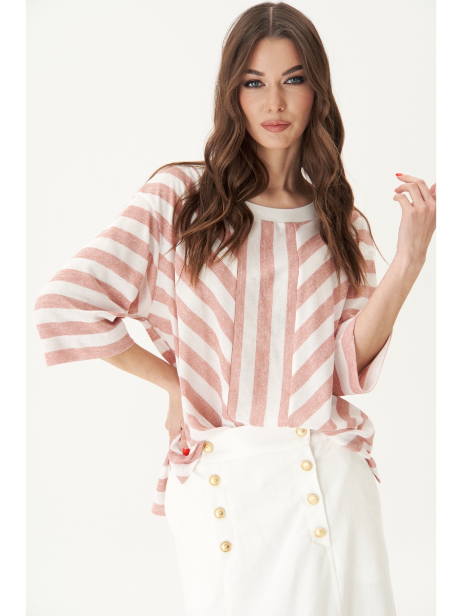 Оформить заказ →Джемпер свободного силуэта, рубашечного покроя с горловиной, отделочной тесьмой-довязом. Полочка с вертикальным делением и сложным соединением полоски под различными углами. Рукав расширенный в области оката.