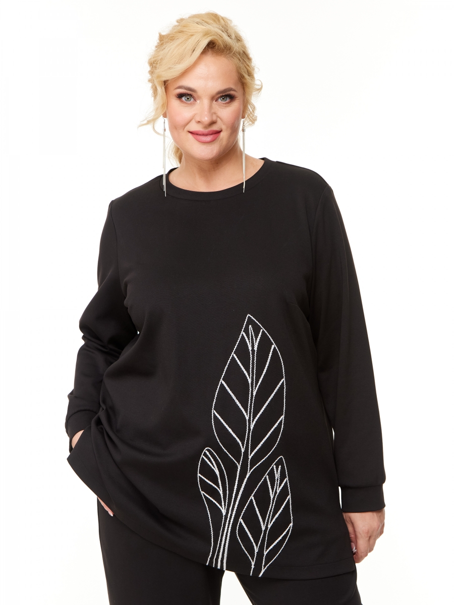 Невероятно комфортный трикотажный джемпер с авторской вышивкой. Джемпер свободного покроя с круглой горловиной. Рукав втачной, полномерный по обхвату, на манжете. По переду авторская вышивка декоративным шнуром «Листья». Для удобства в боковых швах разрезы. Оригинальный джемпер oversize благодаря качественным лекалам хорошо садится по фигуре, не мнётся, удобен для повседневной носки и прекрасно выглядит!