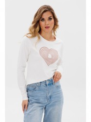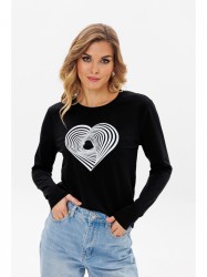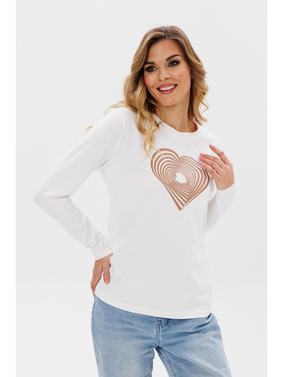 Лонгслив женский полуприлегающего силуэта из трикотажной ткани. По переду расположен принт. Рукав втачной, одношовный. Вырез горловины круглый.