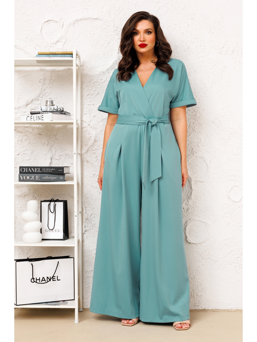 Стильный и невероятно роскошный комбинезон, выполнен из высококачественной плательной ткани. Комбинезон отрезной по линии талии, по спинке с небольшим разрезом-капелькой и застежкой на пуговицу. Рукав цельнокроеный, спущенный, с манжетой.