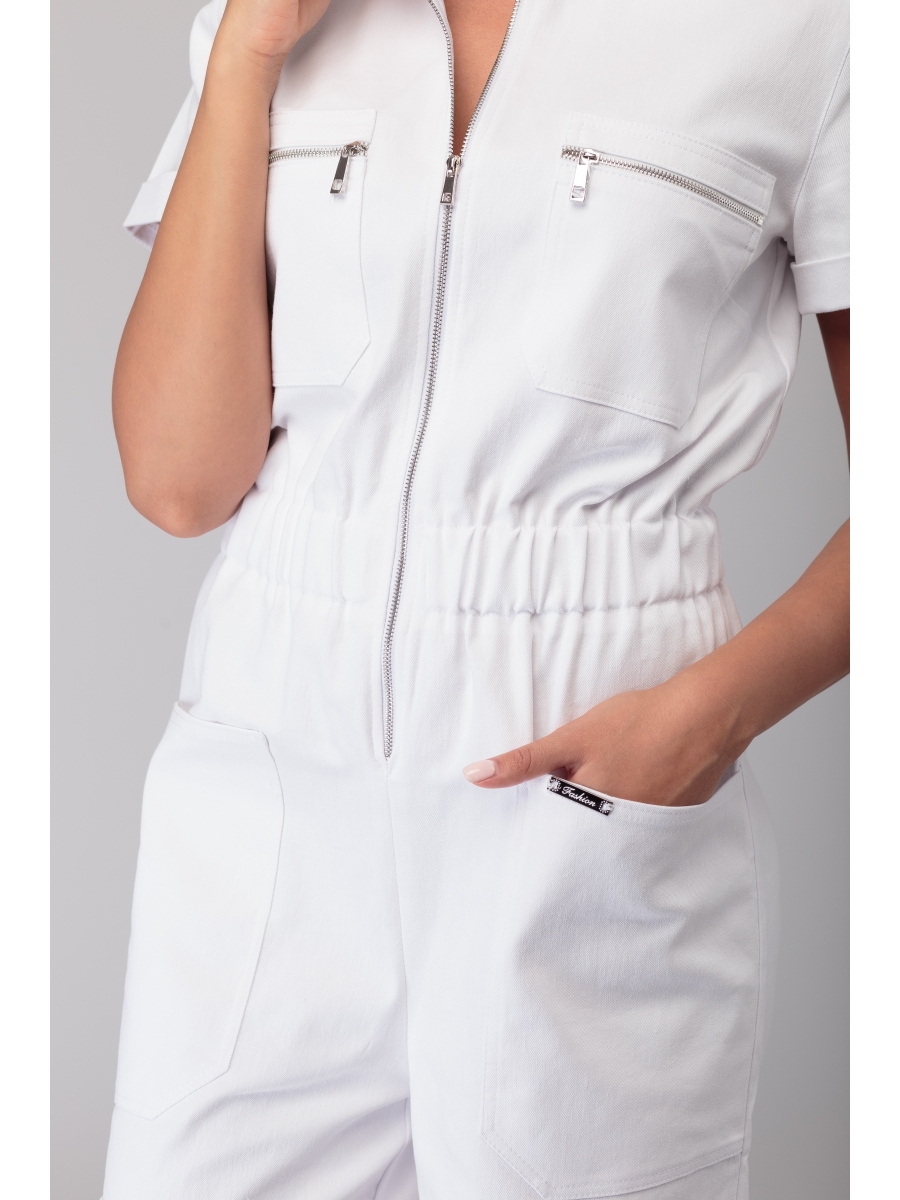 Комбинезон из белого легкого джинса - горячая новинка сезона! Комбинезон с шортами, с эластичным поясом, полуприлегающего силуэта, умеренного объема.