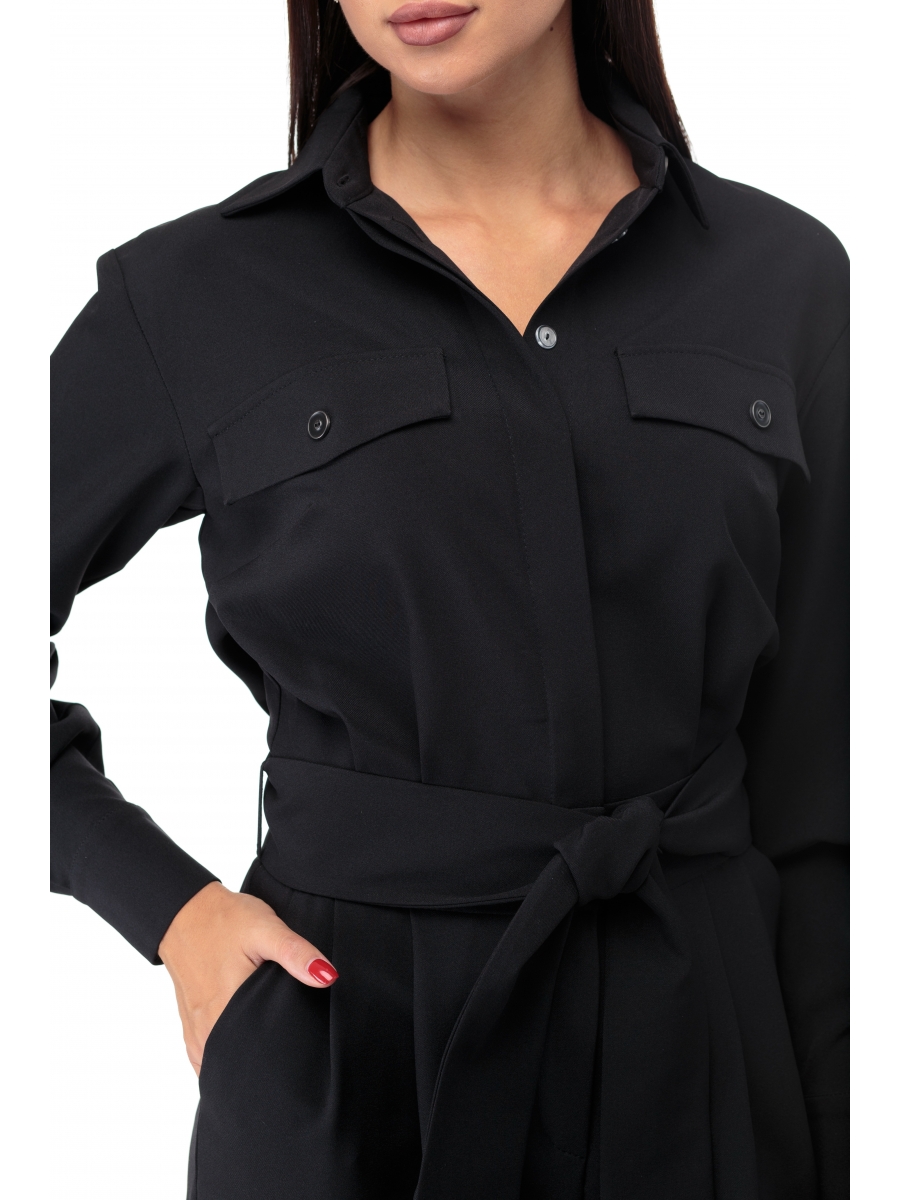 Комбинезон из костюмной ткани создает стильный образ как для каждого дня так и для выхода в свет. Комбинезон полуприлегающего силуэта, на передних частях обработаны нагрудные вытачки и клапаны, потайная застежка планка на петли и пуговицы, спинка с кокеткой, по центру складка на свободу движения. Нижняя часть комбинезона выполнена на широком поясе, по переду заложены складки, застежка «гульфик». Обработаны боковые карманы, на задних частях обработаны талиевые вытачки и клапаны. Воротник рубашечного типа, на стойке. Рукава втачные, длинные, на притачной манжете, с застежкой на петли и пуговицы.В комплекте съемный пояс из основной ткани.
