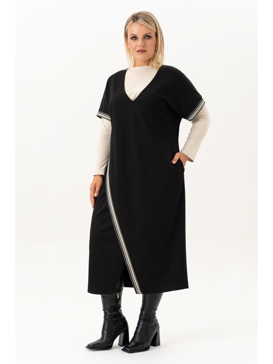 Для офиса и для прогулок, для деловой встречи, корпоратива и даже для школы - этот сарафан свободного покроя подойдет для любого случая. Модель дополнена базовой футболкой с длинным рукавом, Ваш стильный повседневный образ готов! Этот женский офисный сарафан выполнен из трикотажного полотна «Лакоста» - удобного и приятного к телу материала с основой из вискозы , в котором будет комфортно, ткань хорошо держит форму и отличается устойчивостью к износу. Разрез по переду изделия и проймы обработаны декоративной тесьмой. В левом боковом шве обработан карман, линия плеча спущена. Лонгслив выполнен из трикотажного полотна «Кулирка» на основе хлопка. Мы сшили эту модель в больших размерах, чтобы ее могли подобрать для себя обладательницы пышных форм. Этот наряд отлично впишется в строгий образ деловой дамы. Стильный сарафан элегантно впишется в нарядный и повседневный образ. Он подойдет как для любого праздничного мероприятия, так и на каждый день .