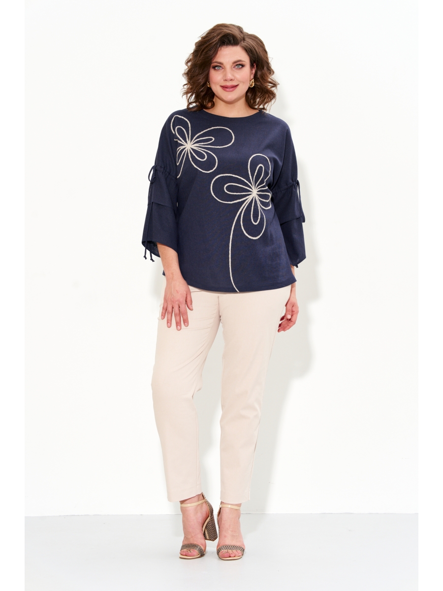 Туника свободного силуэта выполнена из натурального мягкого льна, втачные рукава дополнены кулисой по центру, по переду и спинке декоративная вышивка.
