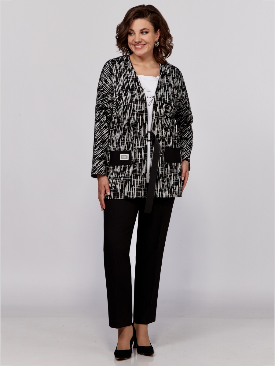 Брючный костюм 1100-1 черно-белый, МишельСтиль – купить с доставкой в Новосибирске на novosibirsk.belpodium.ru