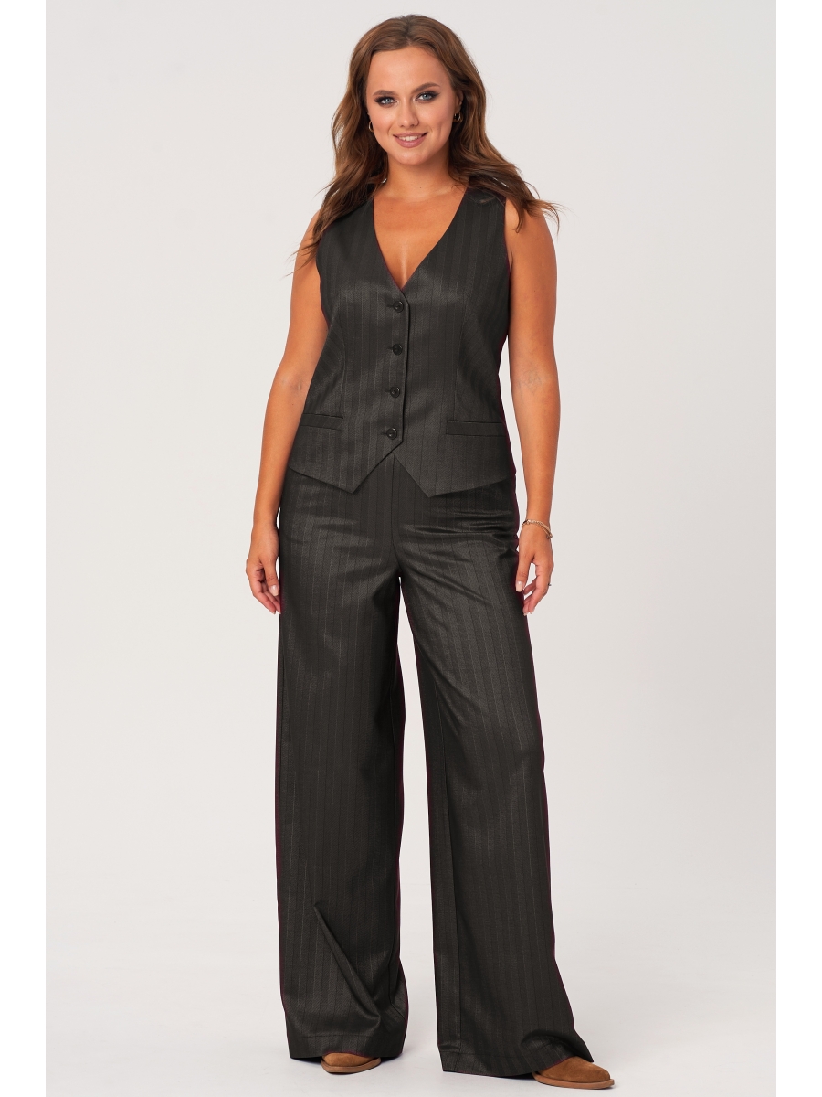 Стильный брючный комплект-двойка с жилеткой подчеркнет Вашу фигуру и придаст образу элегантность. Это классическая одежда, которую можно надеть в офис и на рабочую встречу, а также на любое торжественное мероприятие.