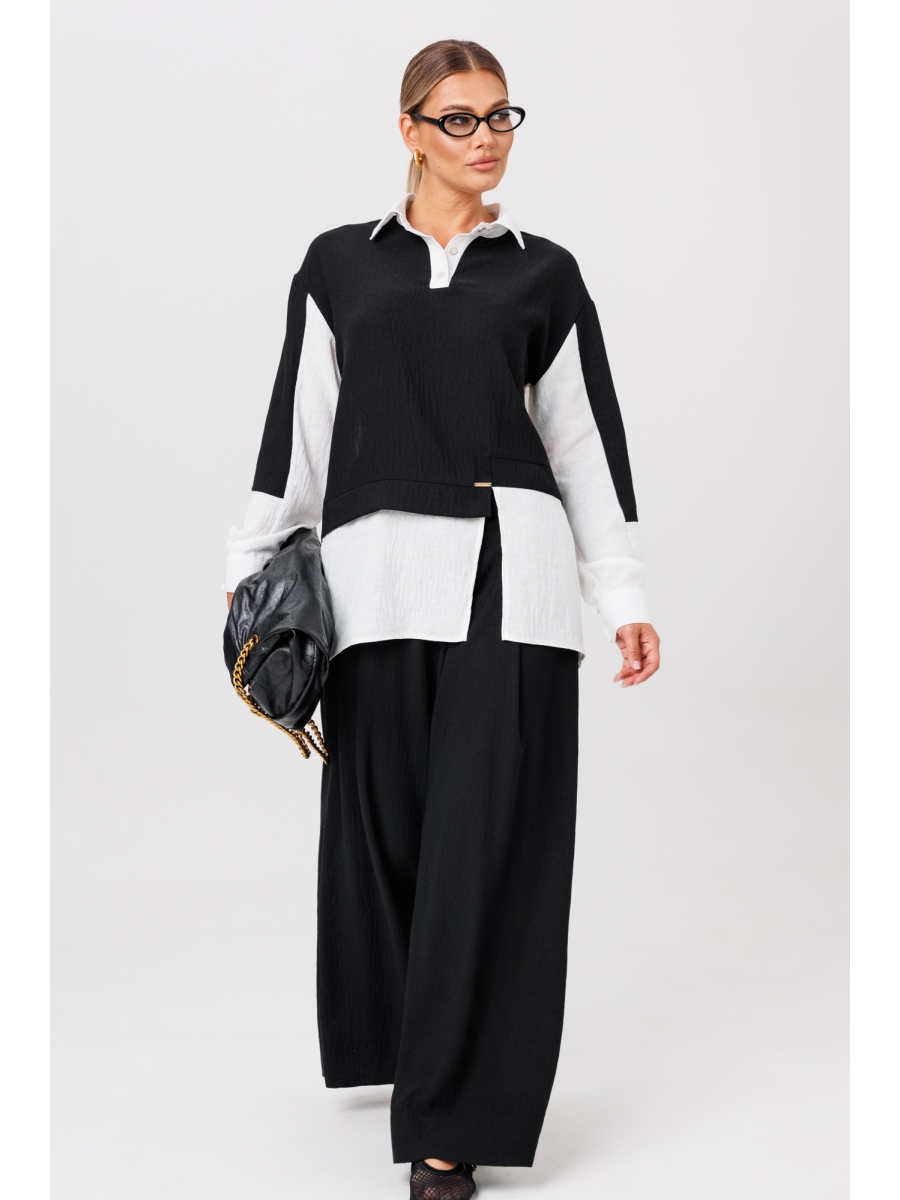Брючный костюм 1242.2 черно-белый, Anastasia – купить с доставкой в Новосибирске на novosibirsk.belpodium.ru