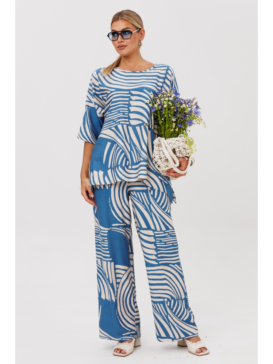 Костюм женский 2-х предметный (блузка, брюки) из текстильной ткани с абстрактным принтом станет акцентным дополнением к вашему гардеробу.